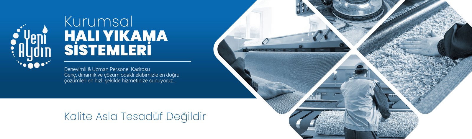 Yeni Aydın Halı Yıkama Fabrikası kurulduğu günden bu yana, kaliteli ve yenilikçi teknolojileri kullanmayı ilke edinerek faaliyet göstermektedir. Müşterilerimize sunduğumuz hizmetleri, bu sektörde edindiğimiz tecrübelerin üzerine teknoloji ve yenilik takibinin sağladığı tüm imkanları ekleyerek personelimize sunduğumuz periyodik eğitimler ile desteklemekteyiz. O yüzden anahtar bizde, çözemeyeceğimiz sorun yok diyoruz.